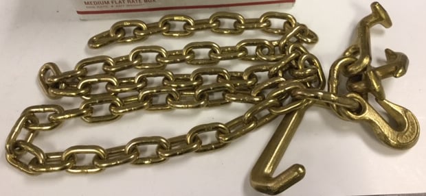 5/16 short pitch chain for auto transport trailers. 4700 lb WLL. Full 4 hook head includes: R, T, J and Grab hook.