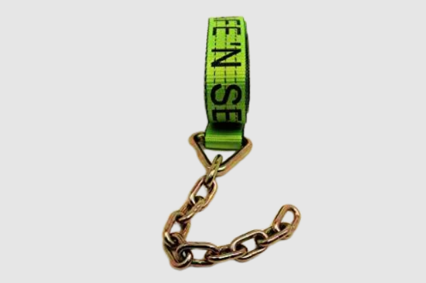 2" X 14' Heavy Duty TECNIC Strap with 12" Chain Tail - HI-VIZ GREEN