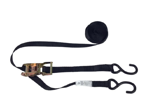 1" x 16' Cargo Strap and Ratchet with Heavy Duty Rubber-Coated S-Hooks 1,000 lb WLL